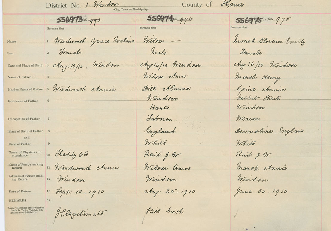 Female Birth Registration: Year: 1910 number: 55600973