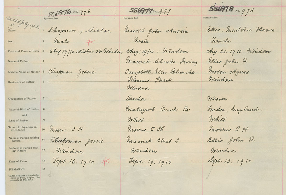 Male Birth Registration: Year: 1910 number: 55600976