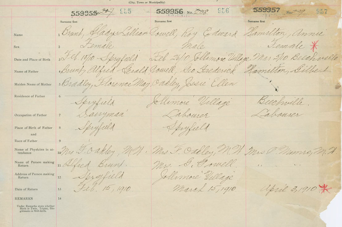 Female Birth Registration: Year: 1910 number: 55900957