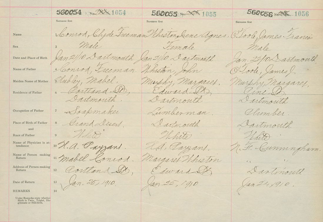 Male Birth Registration: Year: 1910 number: 56000056