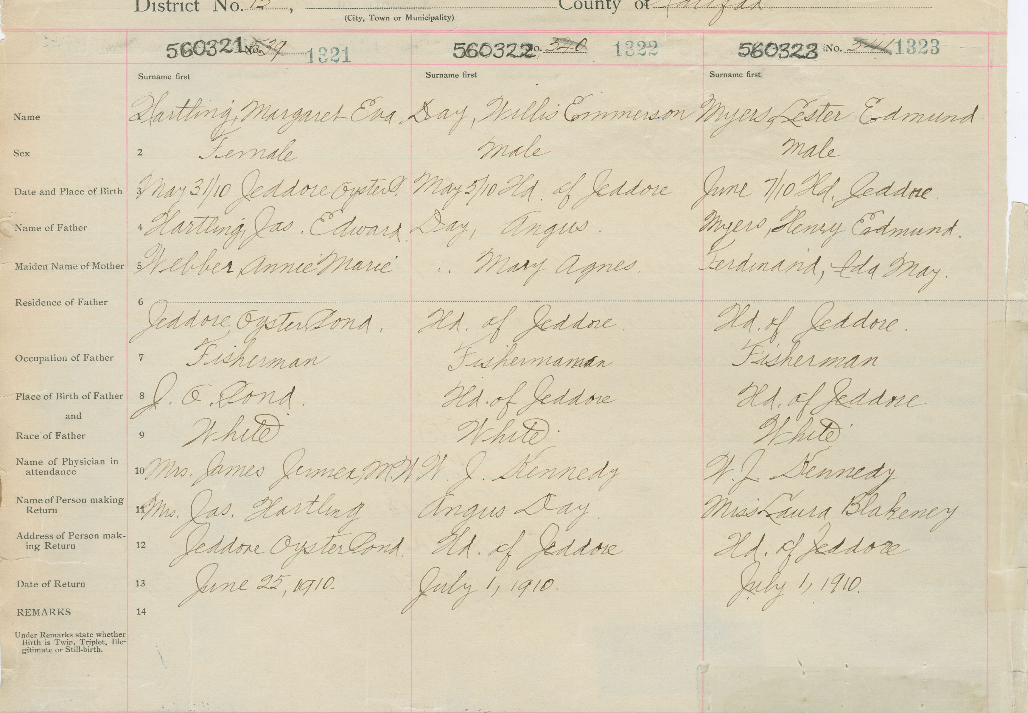 Male Birth Registration: Year: 1910 number: 56000323