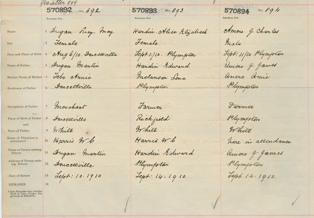Female Birth Registration: Year: 1910 number: 57000892
