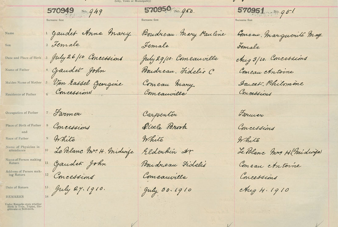 Female Birth Registration: Year: 1910 number: 57000949