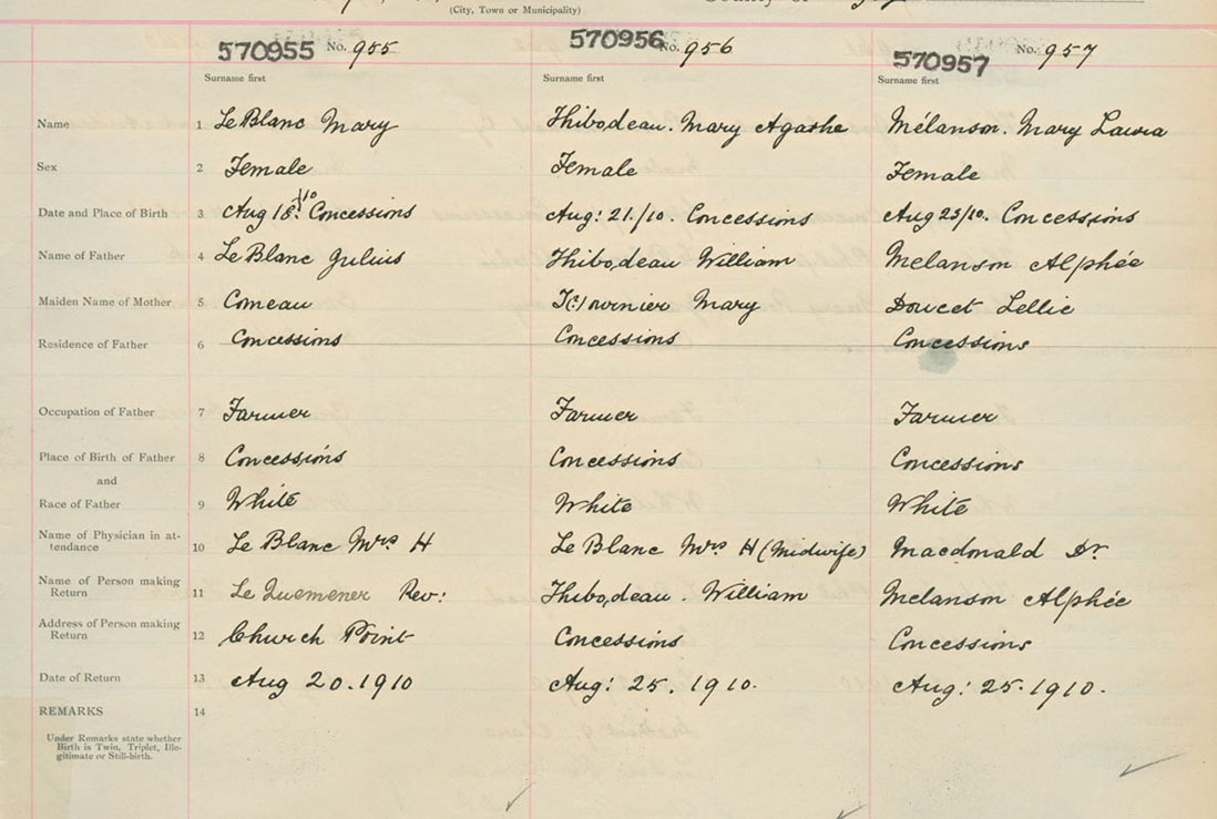 Female Birth Registration: Year: 1910 number: 57000955
