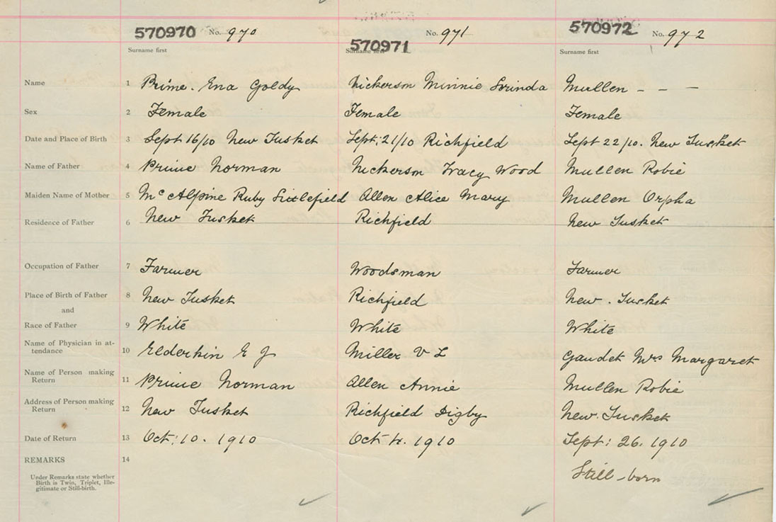 Female Birth Registration: Year: 1910 number: 57000970