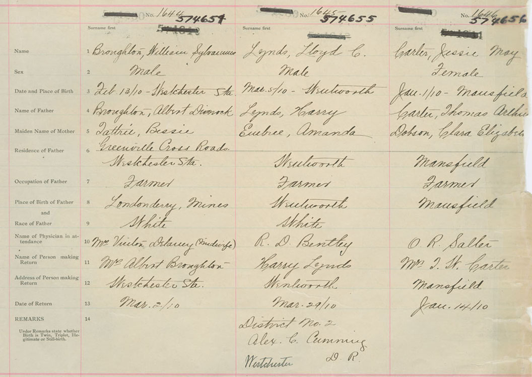 Female Birth Registration: Year: 1910 number: 57400656