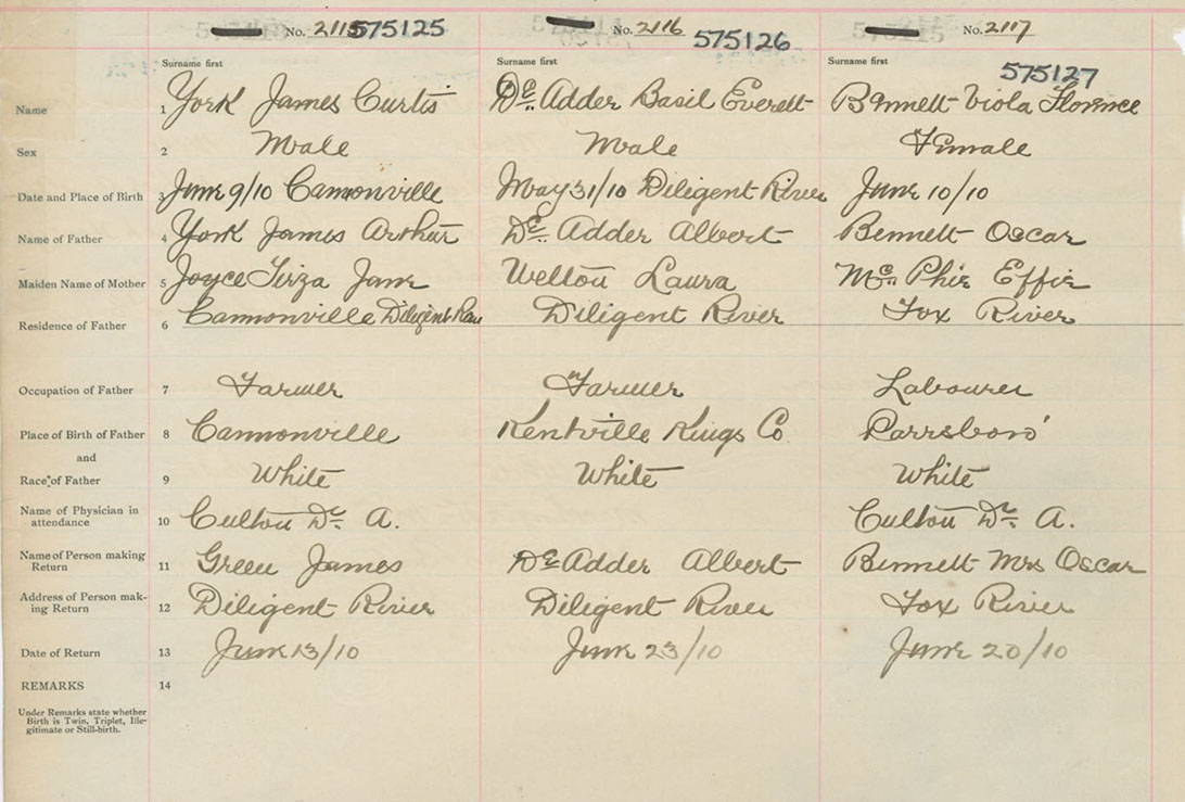 Male Birth Registration: Year: 1910 number: 57500125