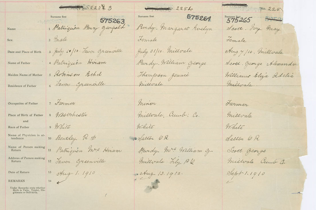 Female Birth Registration: Year: 1910 number: 57500265