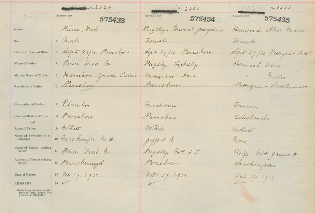 Female Birth Registration: Year: 1910 number: 57500435