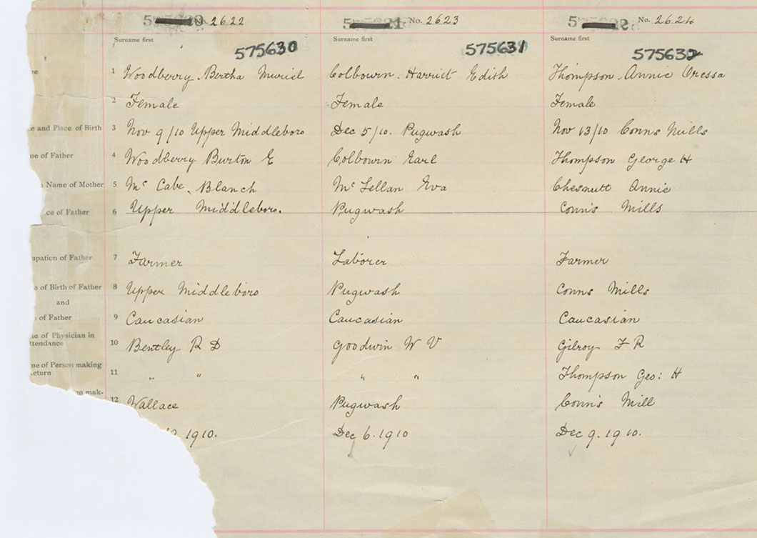 Female Birth Registration: Year: 1910 number: 57500630