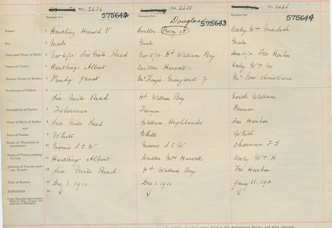 Male Birth Registration: Year: 1910 number: 57500642