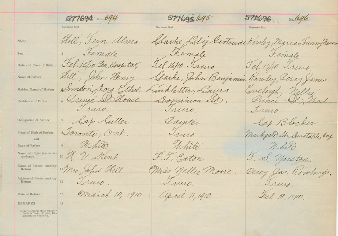 Female Birth Registration: Year: 1910 number: 57700696