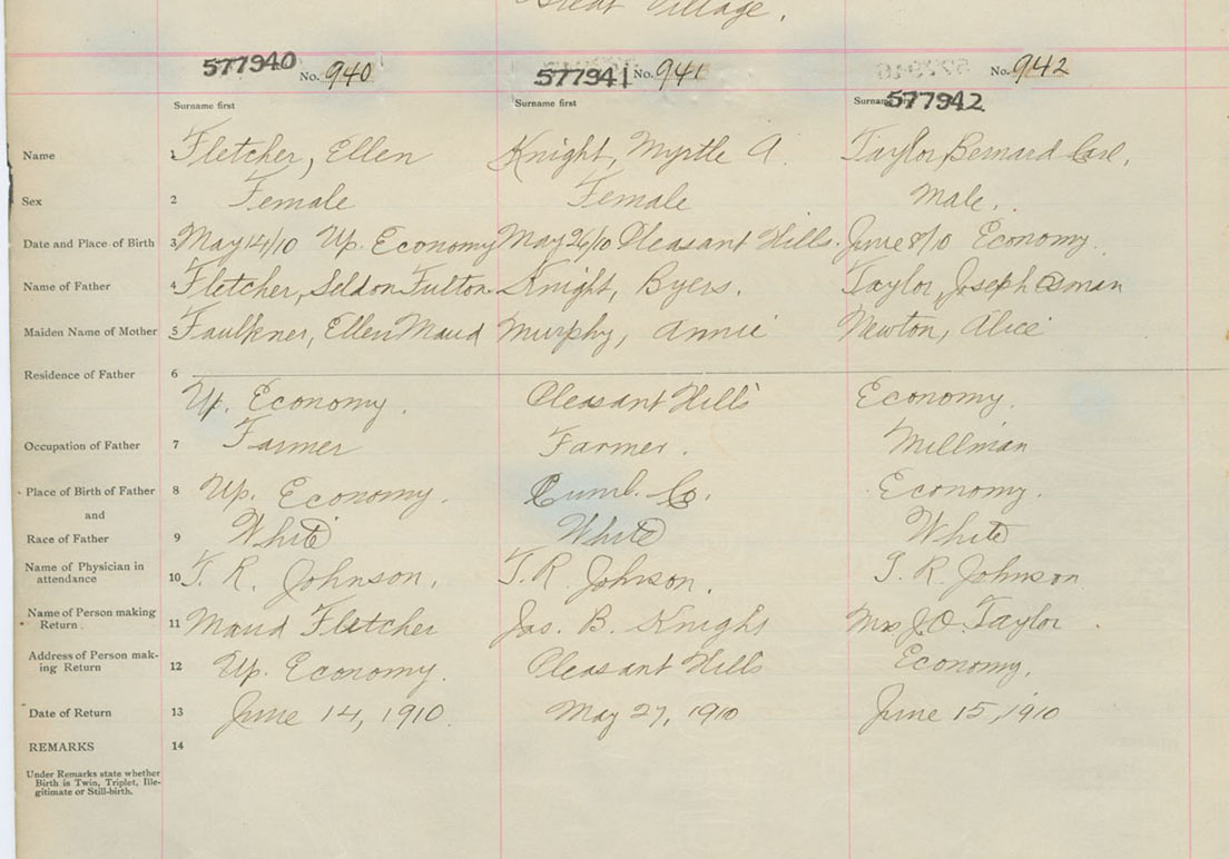 Female Birth Registration: Year: 1910 number: 57700940