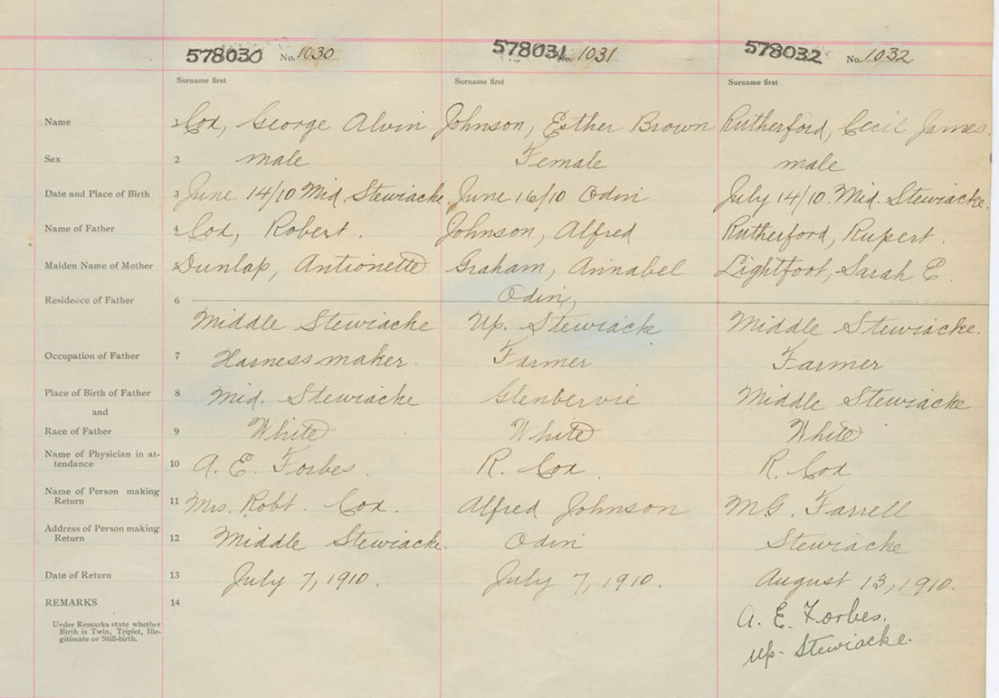 Male Birth Registration: Year: 1910 number: 57800032