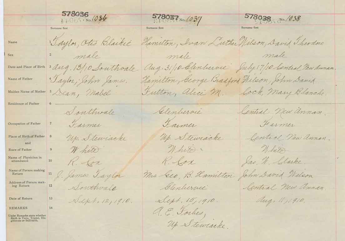 Male Birth Registration: Year: 1910 number: 57800038