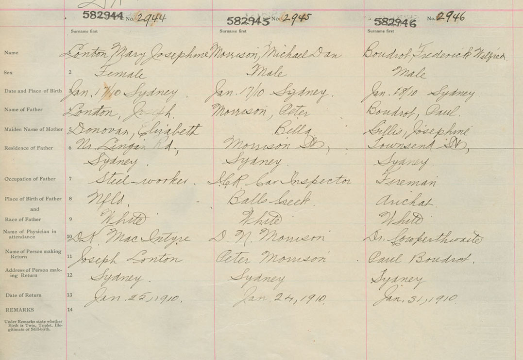 Male Birth Registration: Year: 1910 number: 58200946