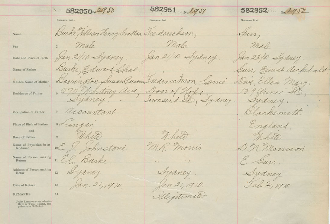 Male Birth Registration: Year: 1910 number: 58200950