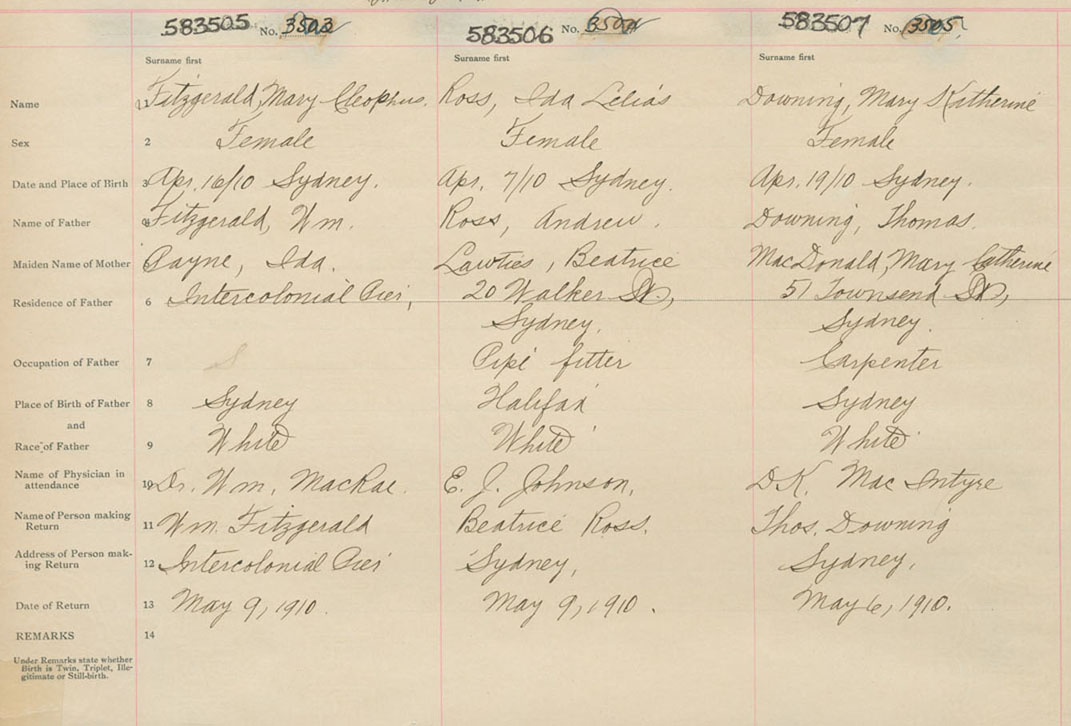 Female Birth Registration: Year: 1910 number: 58300505