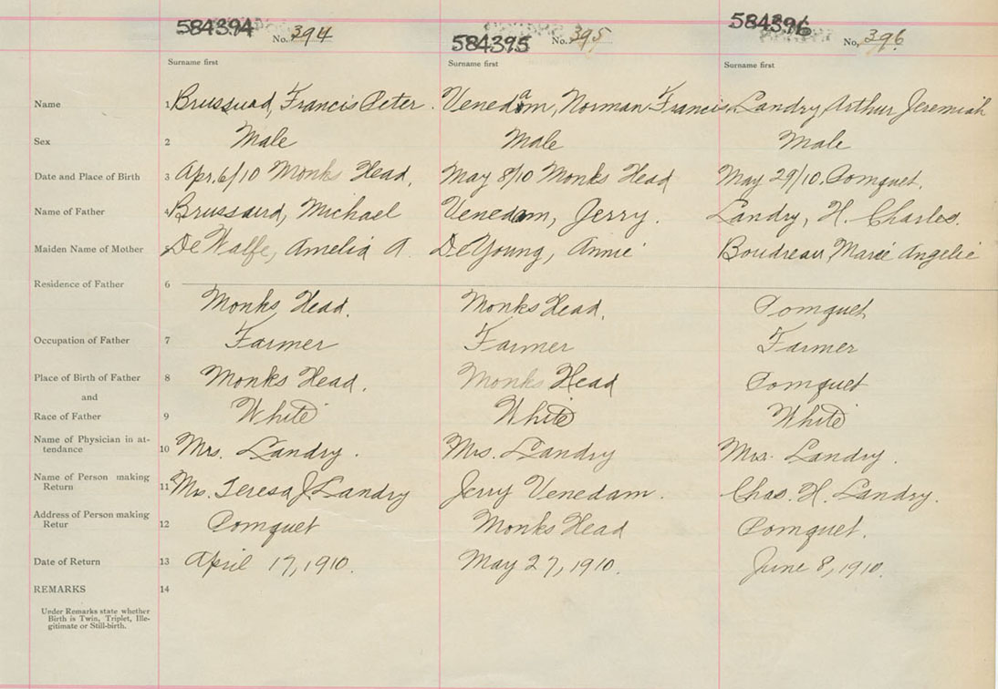 Male Birth Registration: Year: 1910 number: 58400396