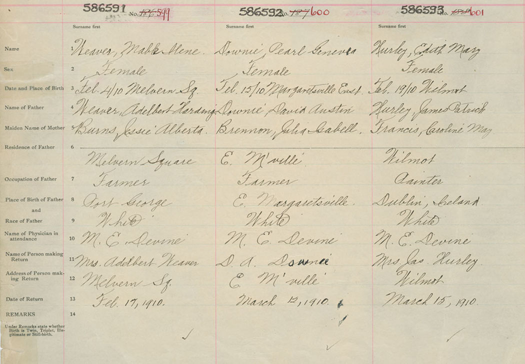Female Birth Registration: Year: 1910 number: 58600593
