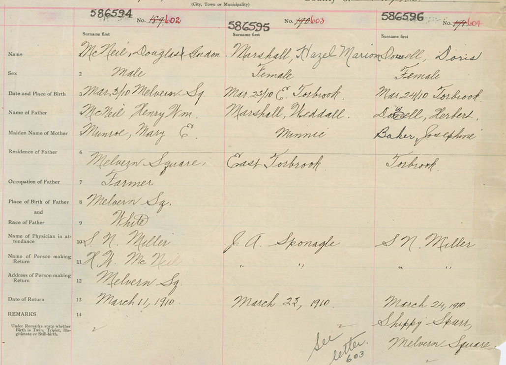 Female Birth Registration: Year: 1910 number: 58600596