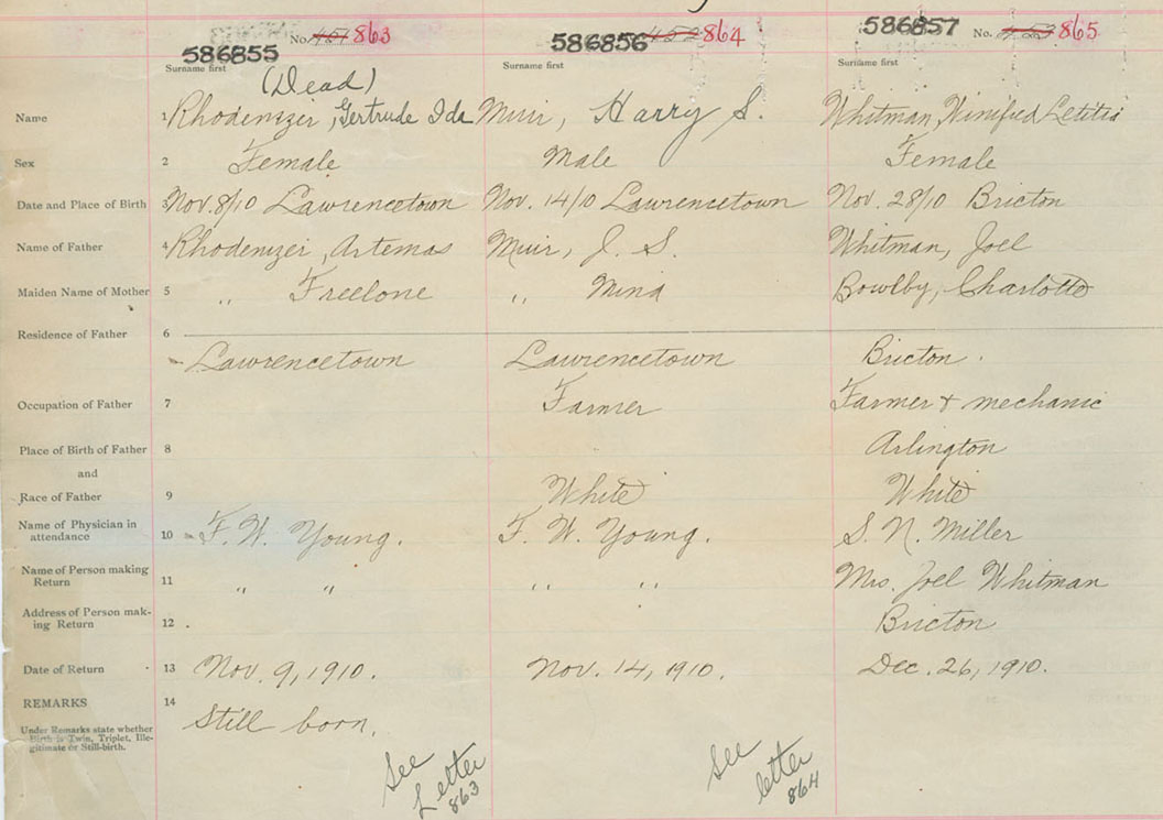 Female Birth Registration: Year: 1910 number: 58600857