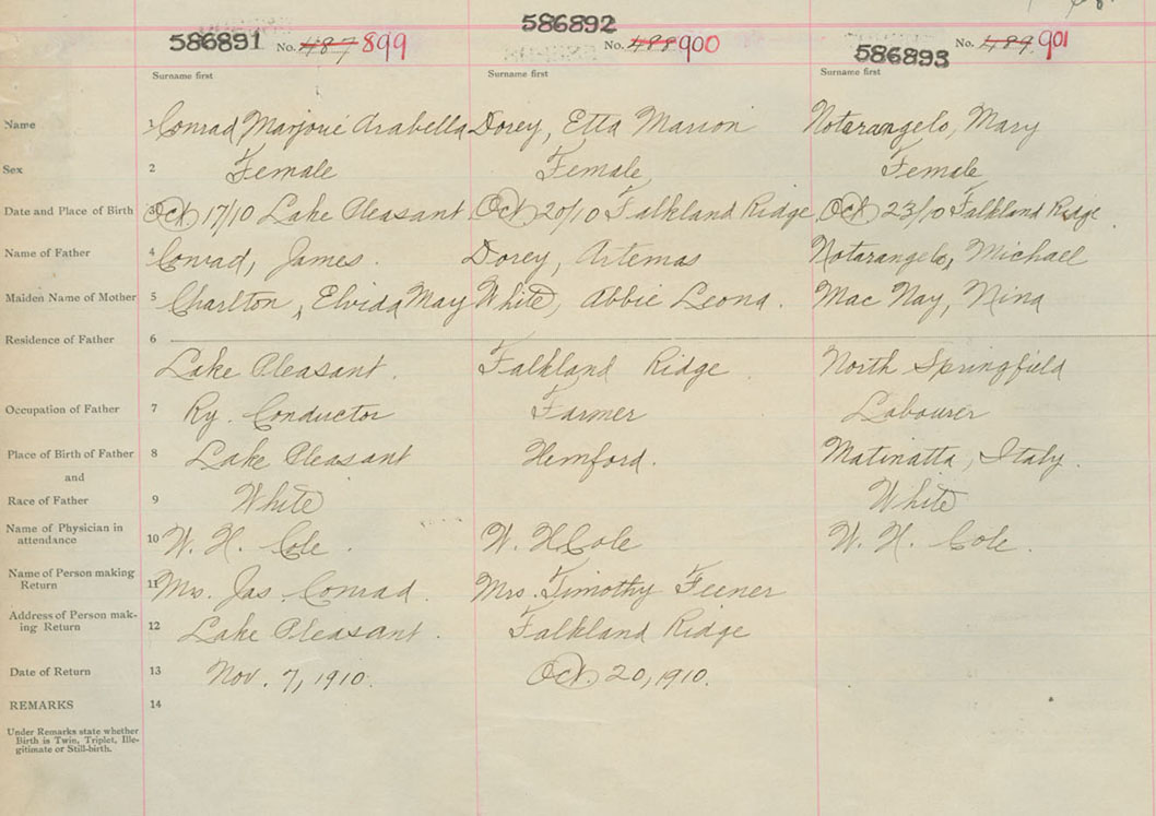 Female Birth Registration: Year: 1910 number: 58600893