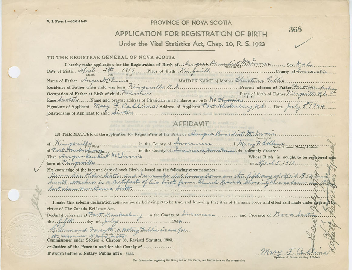 Nova Scotia Archives — https://archives.novascotia.ca/vital-statistics/birth/?ID=256826