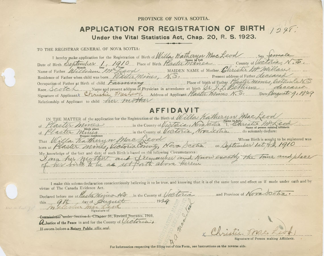 Nova Scotia Archives — https://archives.novascotia.ca/vital-statistics/birth/?ID=256923