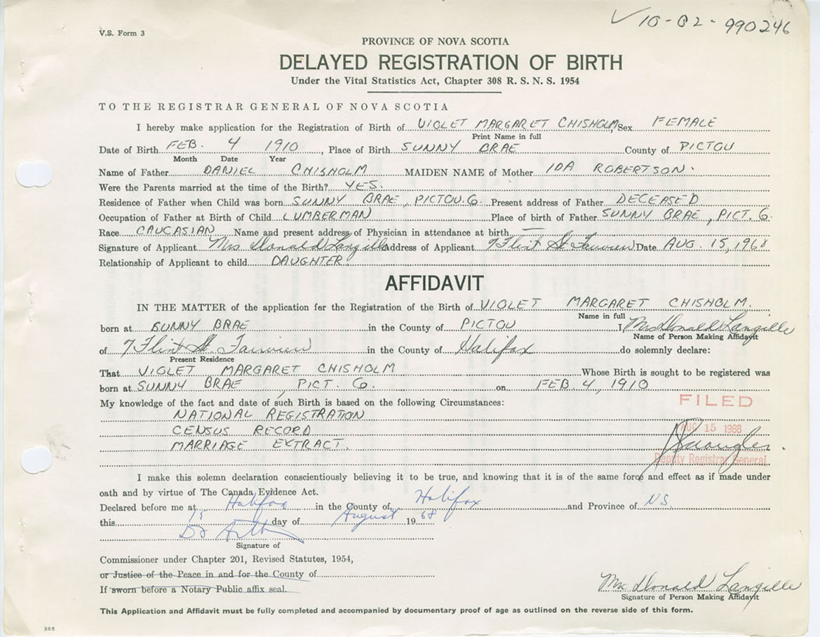 Nova Scotia Archives — https://archives.novascotia.ca/vital-statistics/birth/?ID=257230