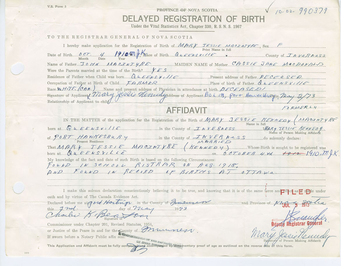 Nova Scotia Archives — https://archives.novascotia.ca/vital-statistics/birth/?ID=257362