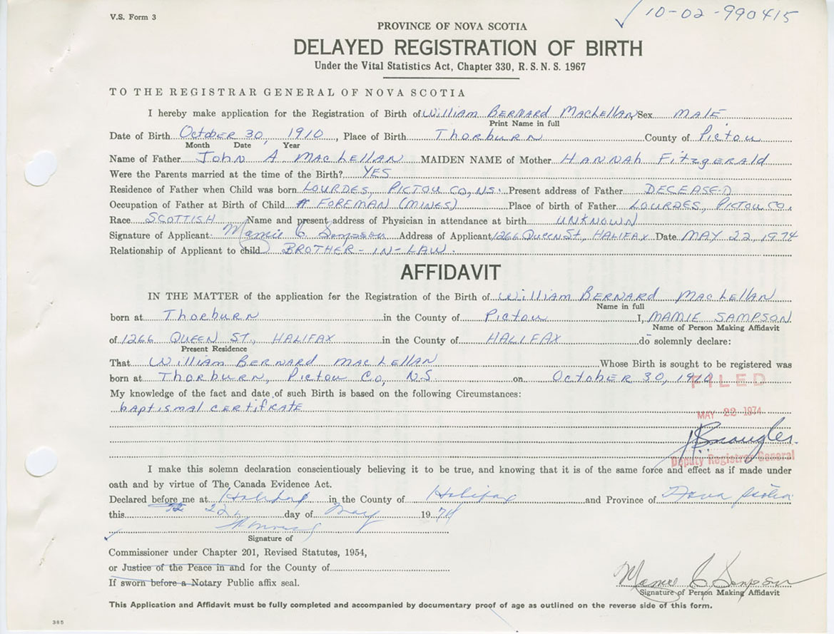 Nova Scotia Archives — https://archives.novascotia.ca/vital-statistics/birth/?ID=257398