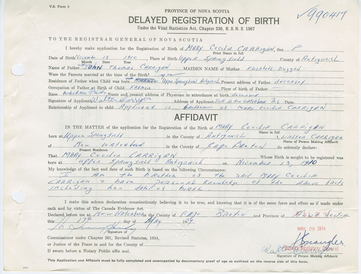 Nova Scotia Archives — https://archives.novascotia.ca/vital-statistics/birth/?ID=257400