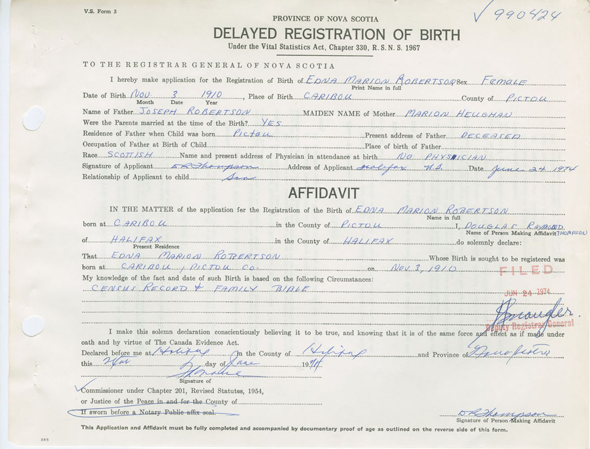 Nova Scotia Archives — https://archives.novascotia.ca/vital-statistics/birth/?ID=257407