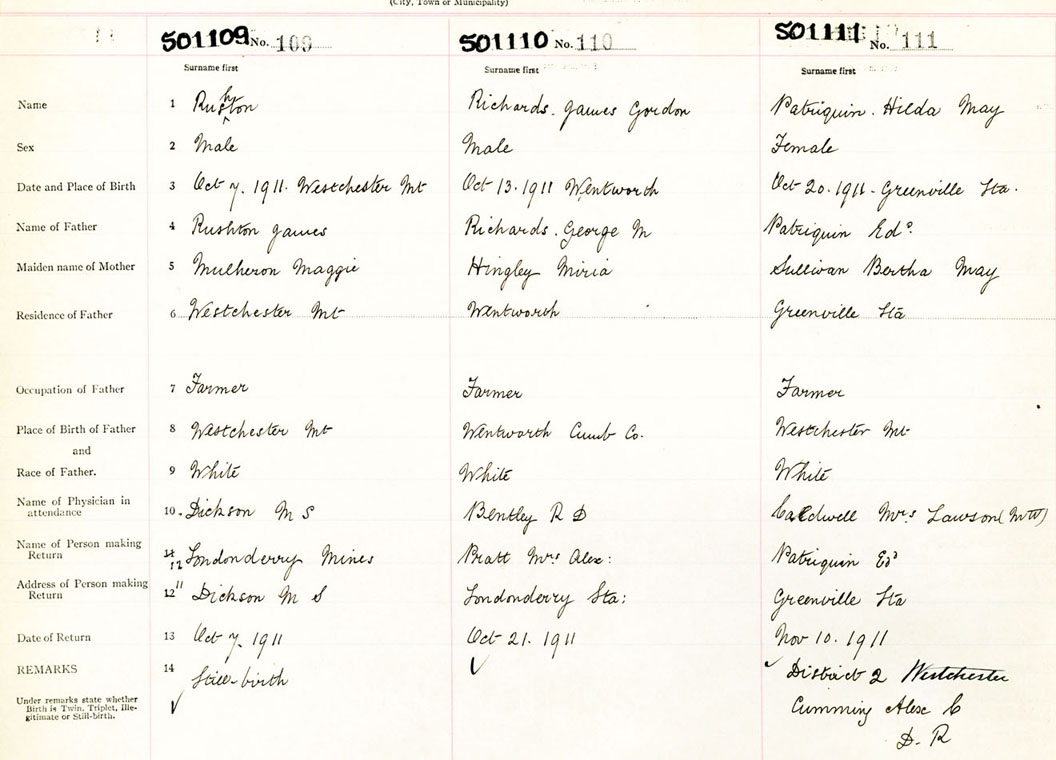 Male Birth Registration: Year: 1911 number: 50100109