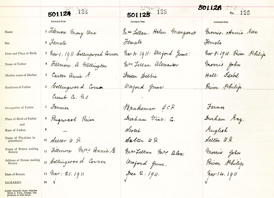 Female Birth Registration: Year: 1911 number: 50100124