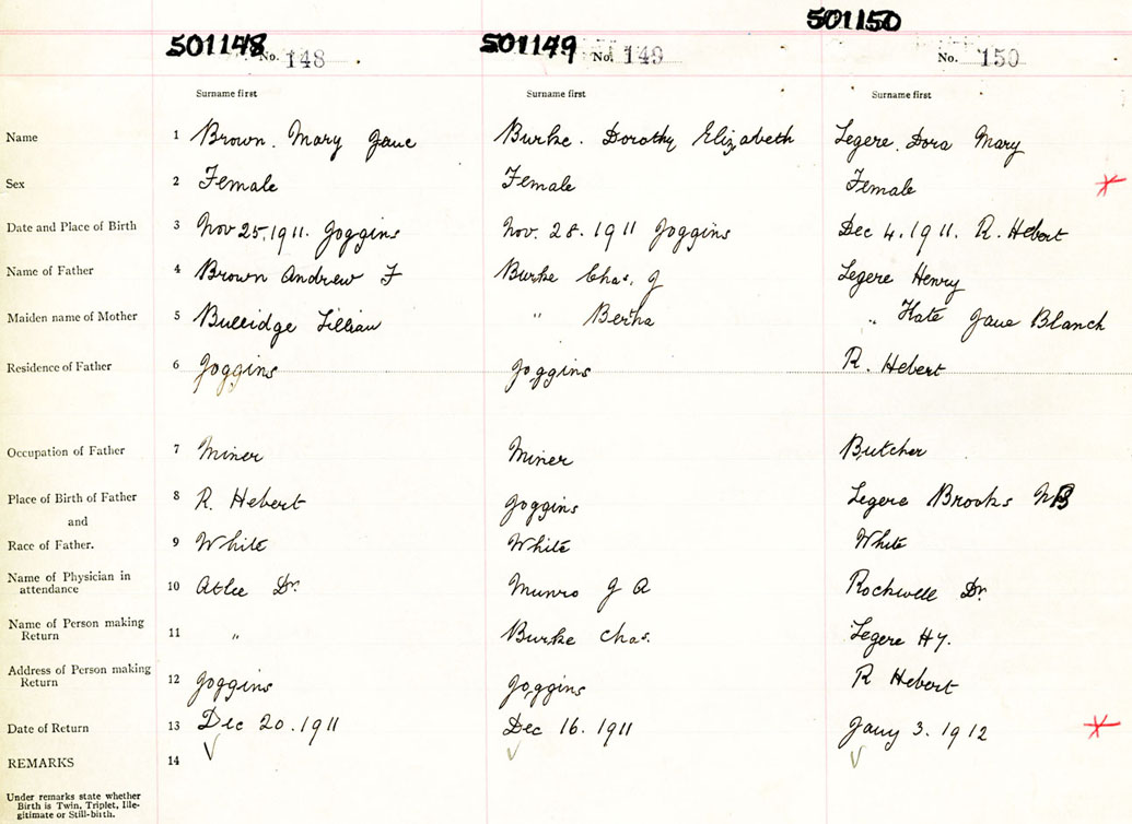 Female Birth Registration: Year: 1911 number: 50100148