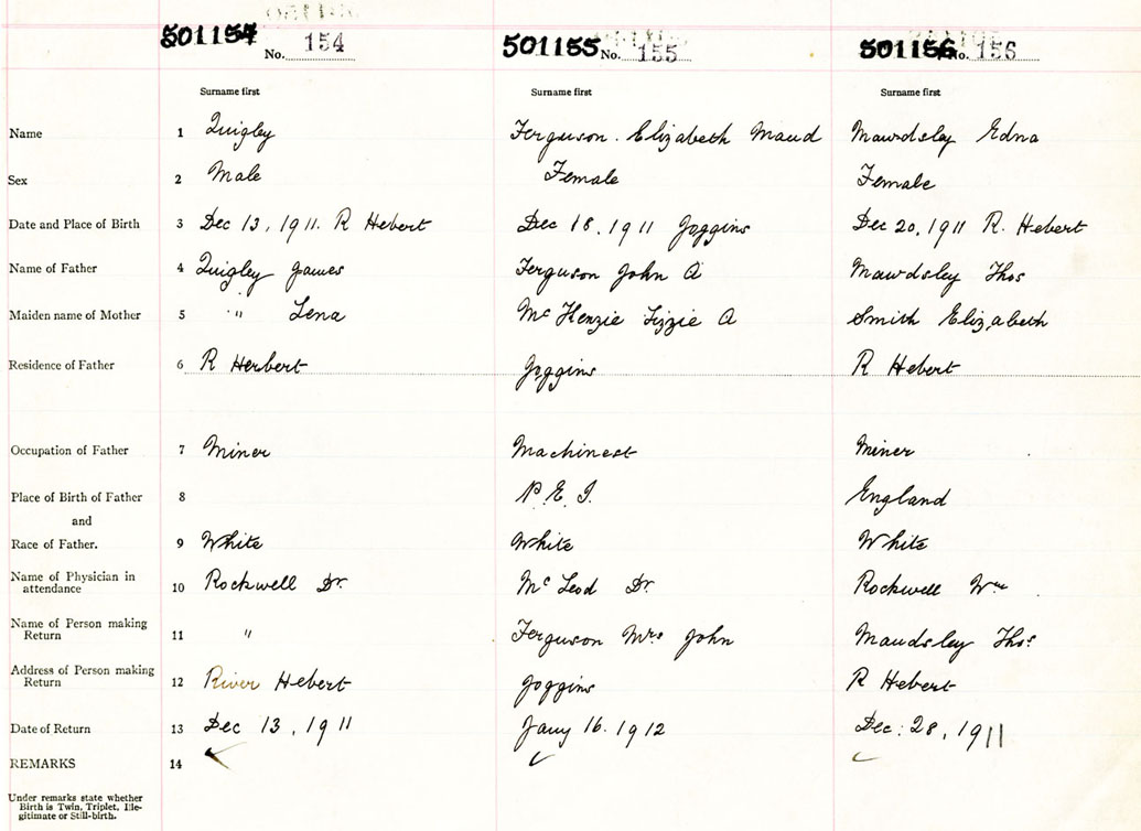 Male Birth Registration: Year: 1911 number: 50100154