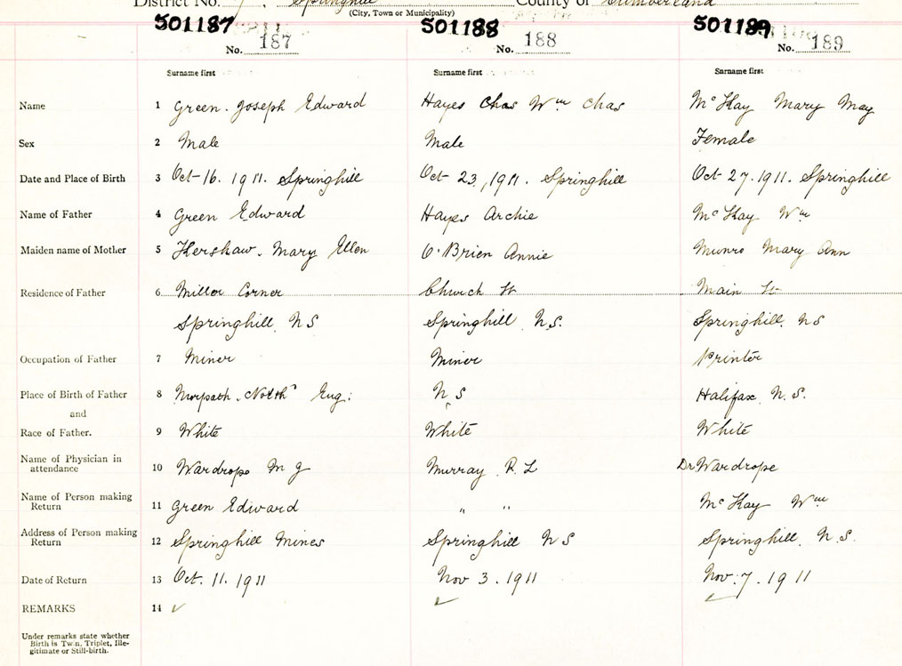 Male Birth Registration: Year: 1911 number: 50100187