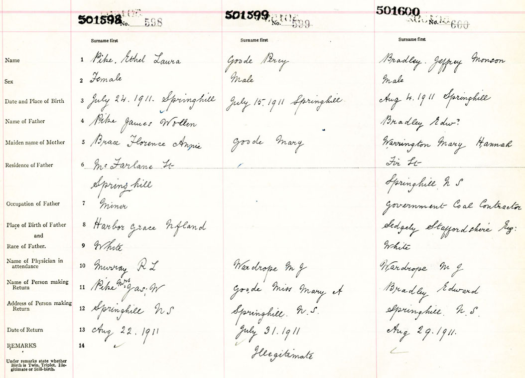 Female Birth Registration: Year: 1911 number: 50100598
