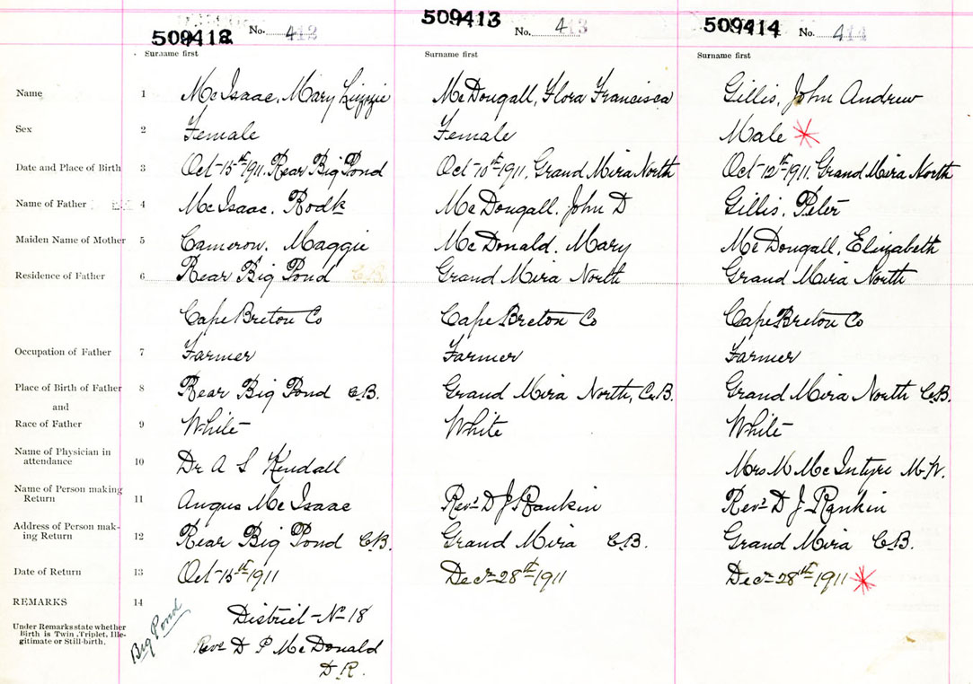 Male Birth Registration: Year: 1911 number: 50900414