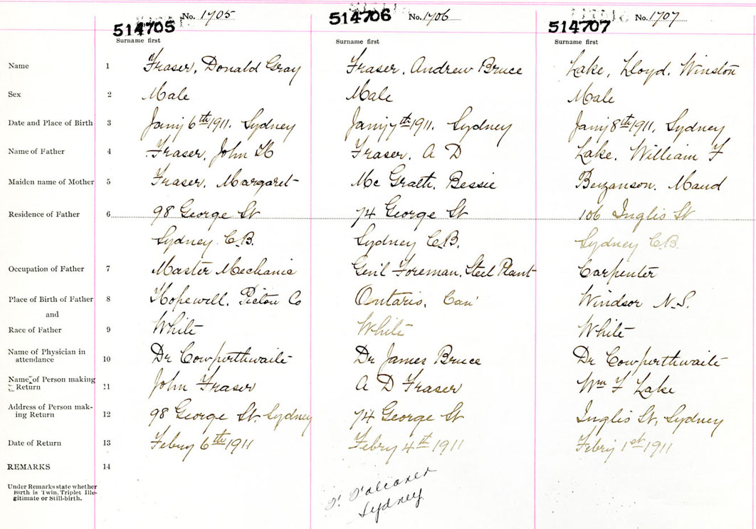 Male Birth Registration: Year: 1911 number: 51400705