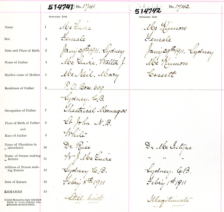 Female Birth Registration: Year: 1911 number: 51400741