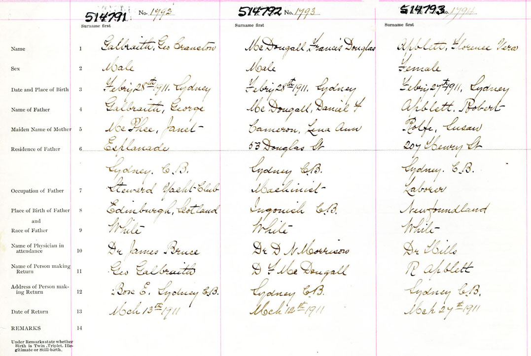 Male Birth Registration: Year: 1911 number: 51400791