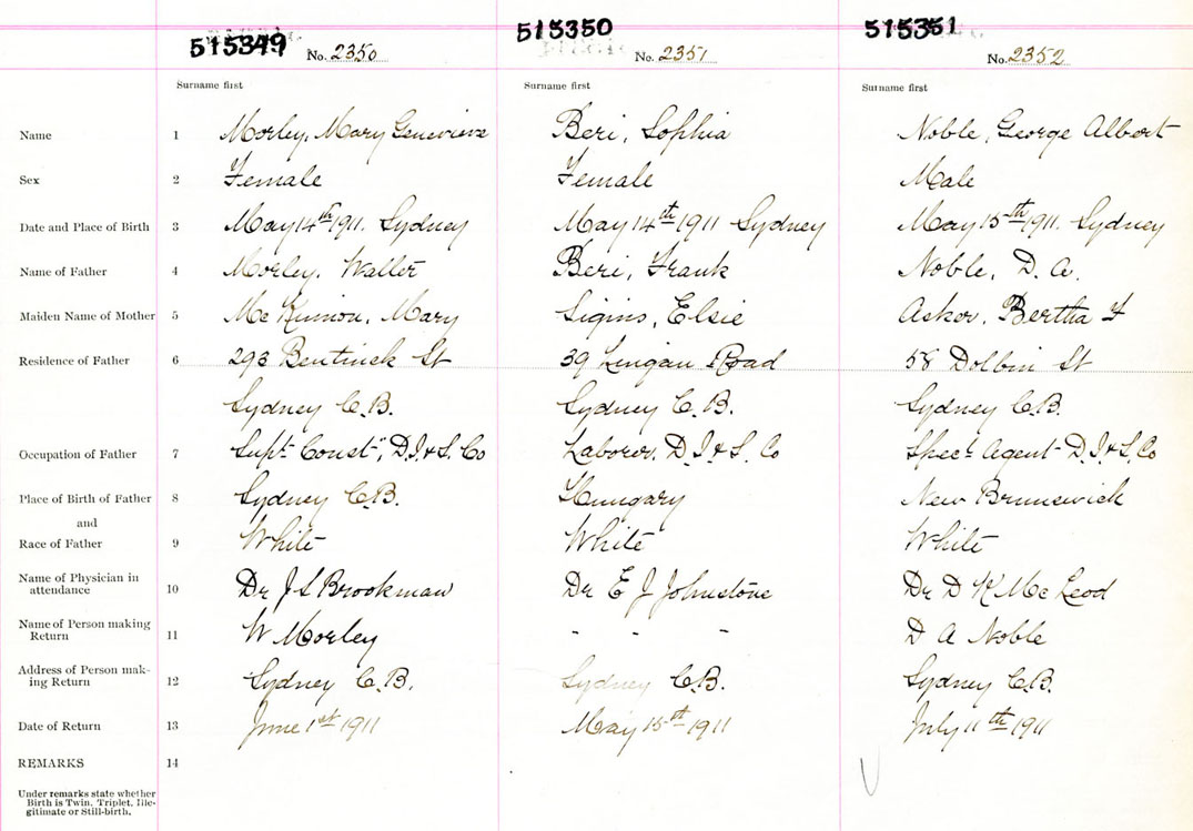 Female Birth Registration: Year: 1911 number: 51500349