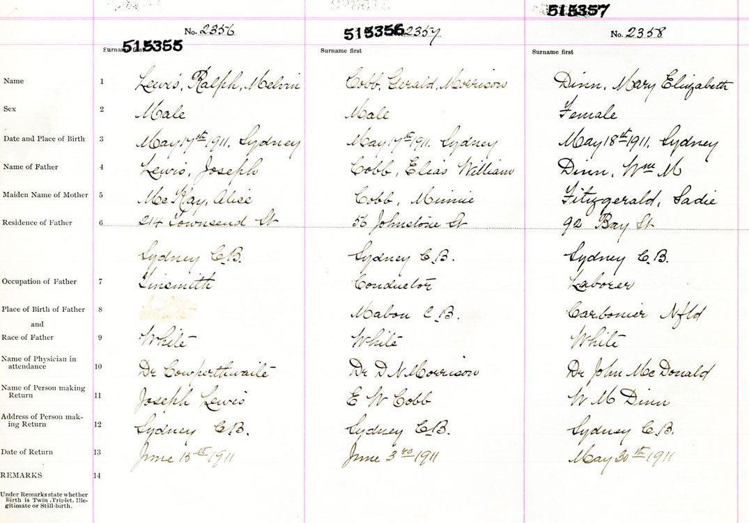 Male Birth Registration: Year: 1911 number: 51500355