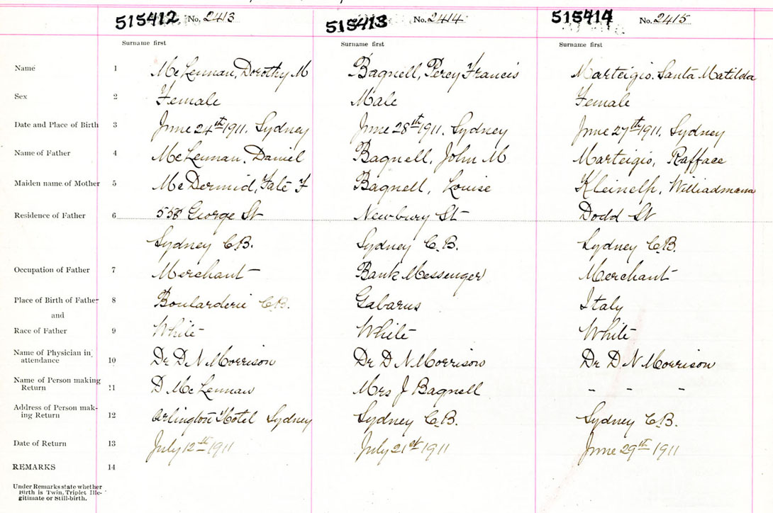Female Birth Registration: Year: 1911 number: 51500414
