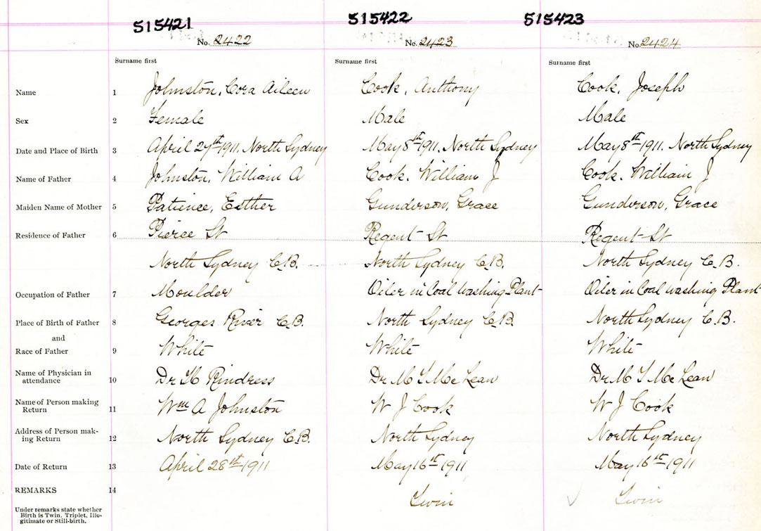 Male Birth Registration: Year: 1911 number: 51500423
