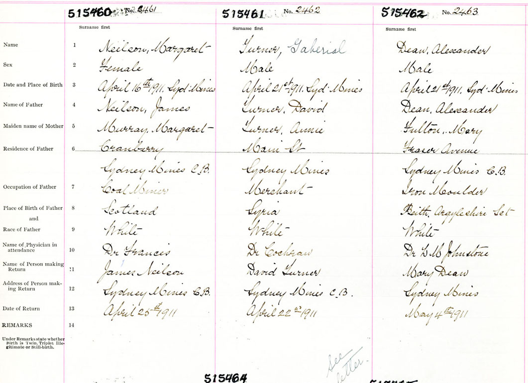 Male Birth Registration: Year: 1911 number: 51500462