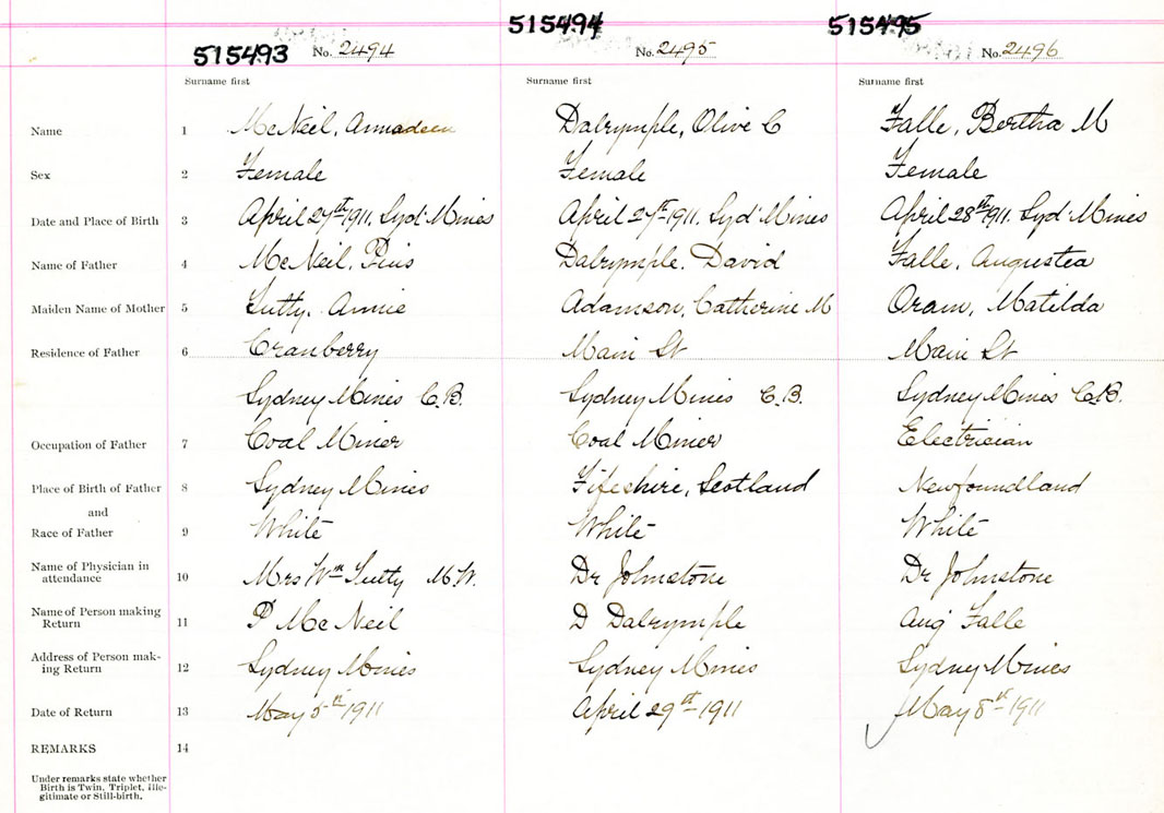 Female Birth Registration: Year: 1911 number: 51500495